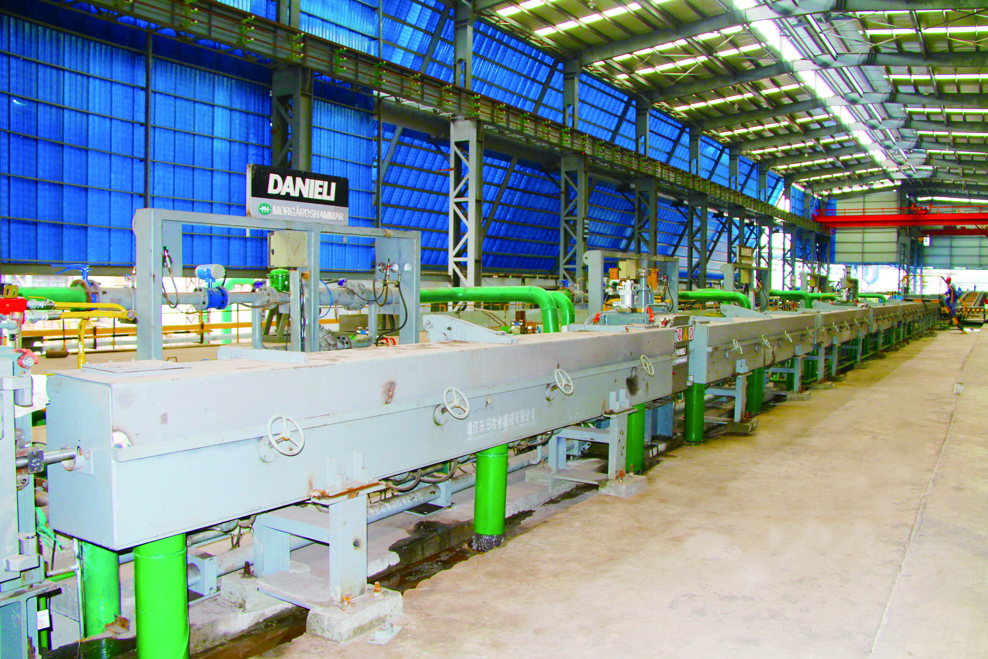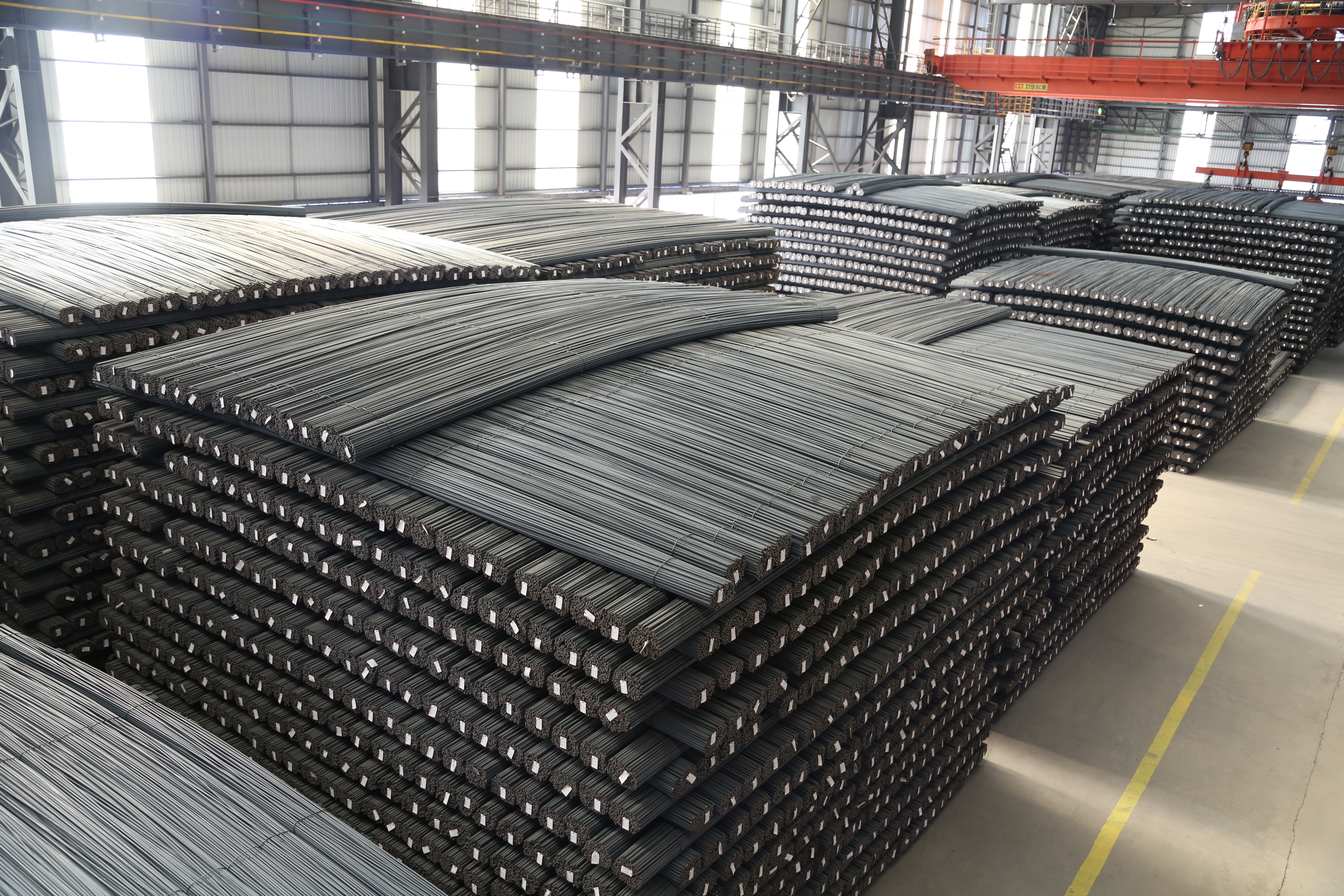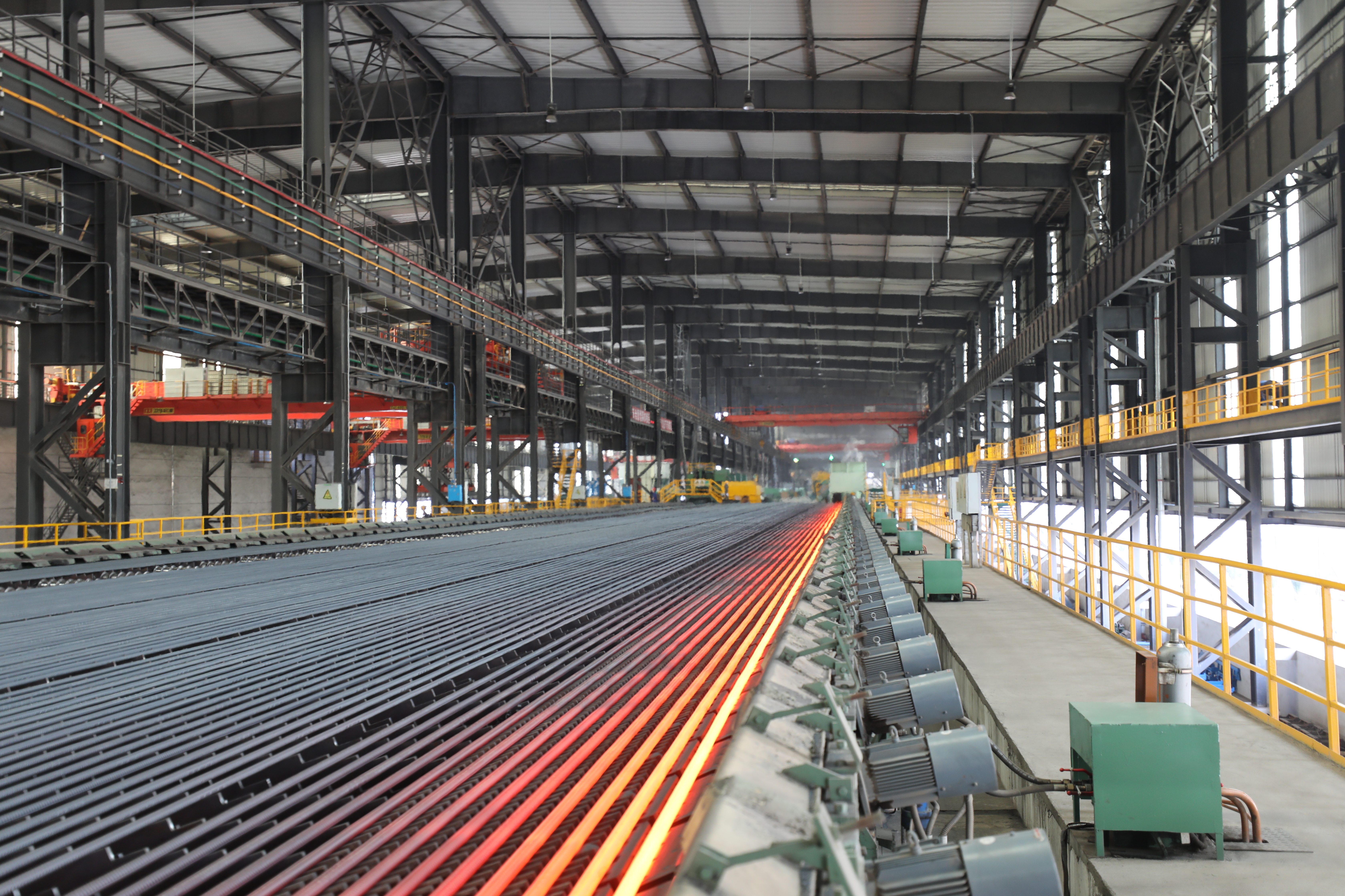 軋鋼廠現(xiàn)有生產設備,整體裝機水平在國內同類軋機中處于領先地位,線材采用先進工藝引進意大利達涅利公司制造的精軋懸臂式 45°軋機八臺、懸臂式 45°減定徑三臺、吐絲機一套,德國西門子制造打捆裝置二套等;帶鋼廠采用自動打包機及自動噴號機械手等裝置,使全線實現(xiàn)自動化控制,從而提高全線生產及管理水平。產品品種多,主導產品有棒材、線材、熱軋中寬帶鋼三大類,棒材可軋制牌號HRB400、HRB500、HRB400E、HRB500E、HRB600,Φ12mm、Φ14mm、Φ16mm、Φ18mm、Φ20mm、Φ22mm、Φ25mm、Φ28mm、Φ32mm、Φ36mm、Φ40mm、Φ50mm等12個規(guī)格鋼筋混凝土用熱軋帶肋鋼筋。線材可以采用普通熱軋工藝、超細晶粒軋制工藝生產規(guī)格Φ6mm、Φ8mm、Φ10mm、Φ12mm,牌號Q195、HPB300 及 HRB400、HRB500、HRB600、HRB400E、HRB500E 鋼筋混凝土用熱軋光圓鋼筋及鋼筋混凝土用熱軋帶肋鋼筋。帶鋼生產品種為碳素結構鋼及優(yōu)質碳素結構鋼 Q195、 Q235、Q355、08A、10、20、45、45Mn 及特種鋼,生產厚度:1.2~12.7mm 、寬度:500~850mm 。全系列高性能抗震鋼筋,碳素結構鋼及優(yōu)質碳素結構鋼、焊接用鋼、拉絲鋼等系列工業(yè)線材品種鋼等中寬帶鋼產品。