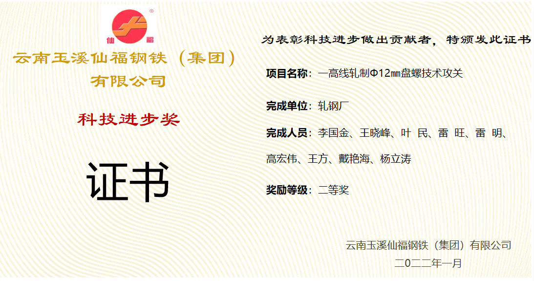 仙福鋼鐵集團軋鋼廠下設線材、棒材、帶鋼三個分廠,總員工850人,各分廠采用生產設備先進。其中線材分廠生產的光圓、盤螺產品引進美國摩根、意大利達利涅技術裝備,產品是高強度細晶粒抗震鋼筋,填補了云南省軋材生產的技術空白,實現(xiàn)了向高質量、高附加值產品的戰(zhàn)略轉移。帶鋼分廠的優(yōu)特帶產品包括沖壓用鋼、鍋爐用鋼、汽車用鋼、橋梁用鋼、高端護欄板等可后續(xù)延伸,主要應用于下游的各類金屬制品行業(yè),如焊管、冷彎、冷軋、鍍鋅、機械制造、鋼結構制作、裝潢等多個行業(yè)。